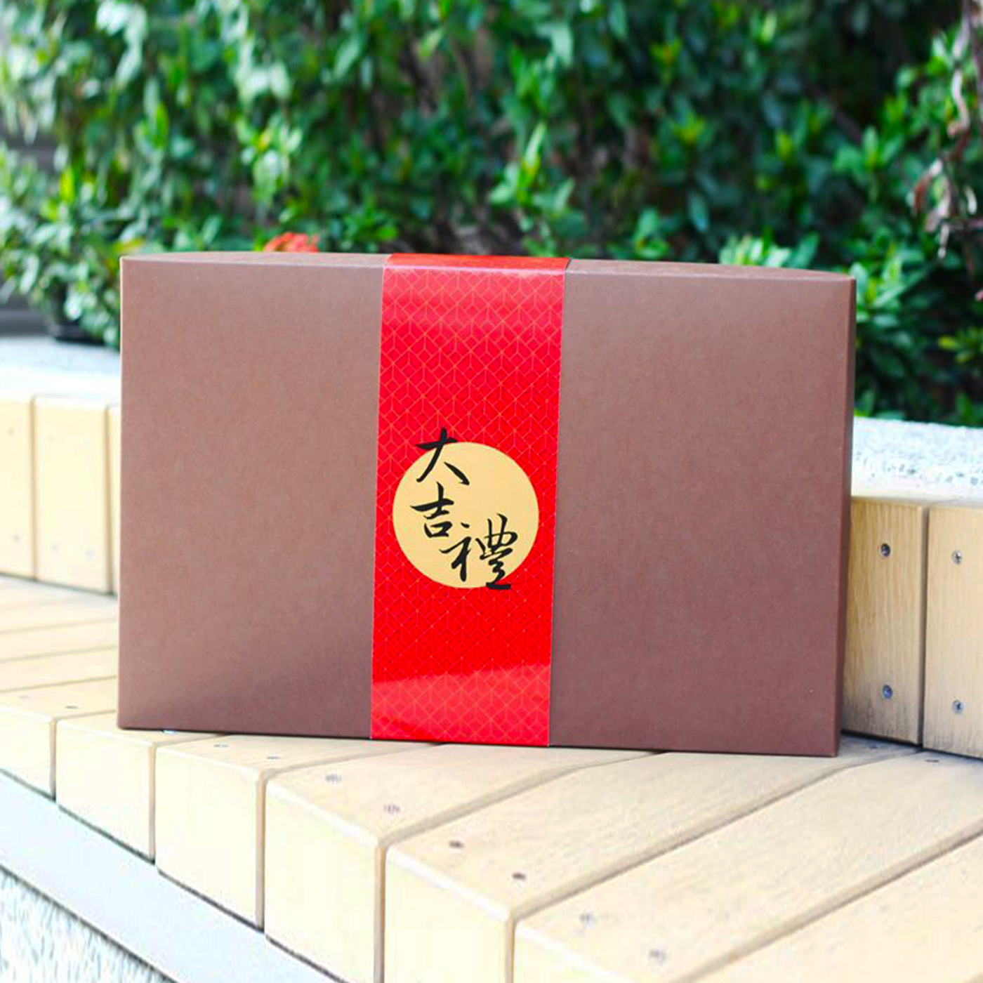 「2019 大吉禮」春節貴賓禮。串聯四家社企良品:勝利廚房辛甘醬、台灣好於鱸魚鬆、源天然黑纖米、鄰鄉良食香菇紅棗。包裝由勝利印刷監印。
