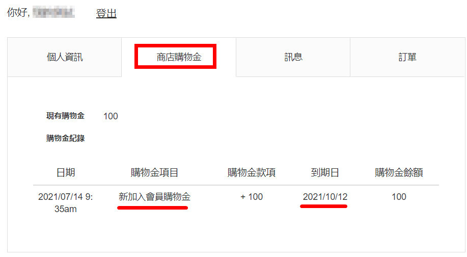 購物金項目:可登入會員之後於「我的帳戶」的「商店購物金」看到明細