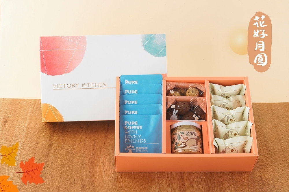 今年中秋,我們為大家設計了富足大方的大禮盒,內含低溫鮮磨的無糖堅果醬、福氣又圓滿的窯香福圓酥、香酥可口的手作餅乾球,再搭配手挑豆的咖啡掛耳包;想要輕巧高雅的,可以選擇我們今年的新式樣:小長條禮盒,裏頭配置的有來自東山窯燒龍眼的福圓酥,以及巧克力百香水果酥等等;當然同樣的,我們還是有提供貼心的客製化服務,滿足不同送禮需求。
