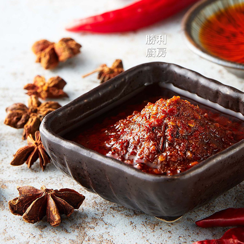 勝利廚房的招牌「辛甘香辣醬」100%都是在自家廚房製作,使用的都是新鮮的辣椒,以及曬乾的辣椒籽,完全不添加任何人工香料及色素,當然更不會為了求色澤漂亮使用高風險的化學物質。也因此,每批產製出來的辛甘醬,辣度、顏色都會有些微的起伏差異,這是天然原料會有、也該有的現象。